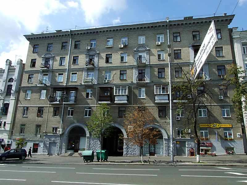 Житловий будинок (№ 32) Розмір зображення: 800:600 піксел Вкладені елементи 2007 р. Головний фасад 2007 р. Фрагмент 5-6-го поверхів головного фасаду 2007 р. Двері з рельєфною вставкою