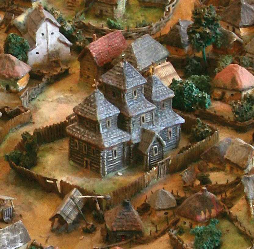 Гіпотетична дерев’яна церква Розмір зображення: 832:816 піксел Умоглядна реконструкція. Вкладені елементи Вигляд з північного сходу Вигляд з північного сходу Вигляд зі сходу Вигляд з півдня Вигляд із заходу Вигляд із заходу