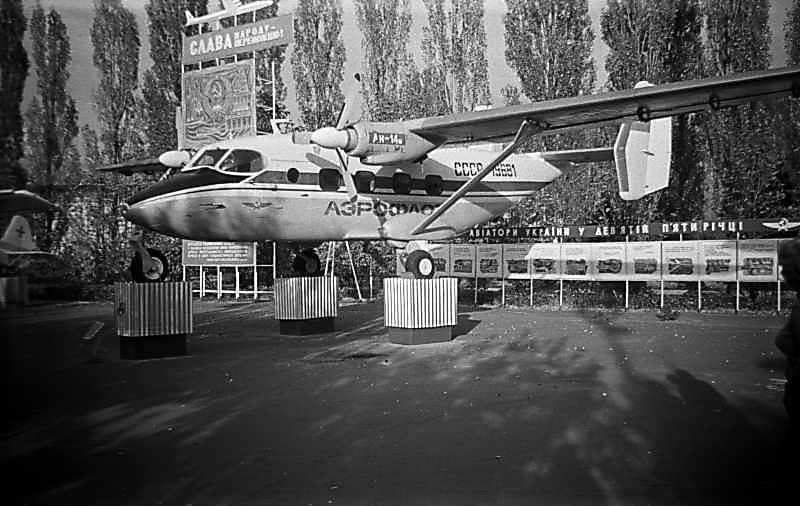 1975 р. Літак Ан-14 Розмір зображення: 800:506 піксел 1975 р. 28 вересня. Фото М.І.Жарких. Негатека, № A068-21. Попередня сторінка | Вище | Наступна сторінка