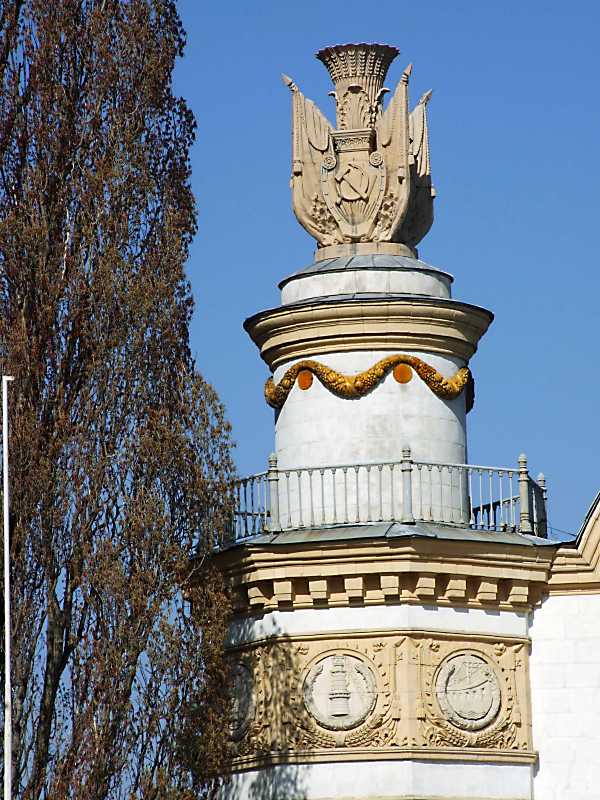 Верх башти Розмір зображення: 600:800 піксел 22 квітня 2011 р. Фото М.І.Жарких. Вкладені елементи Акротерій Керамічні панно Керамічне панно “Гідроелектростанція” Керамічне панно “Доменна піч” Керамічне панно “Шахта”