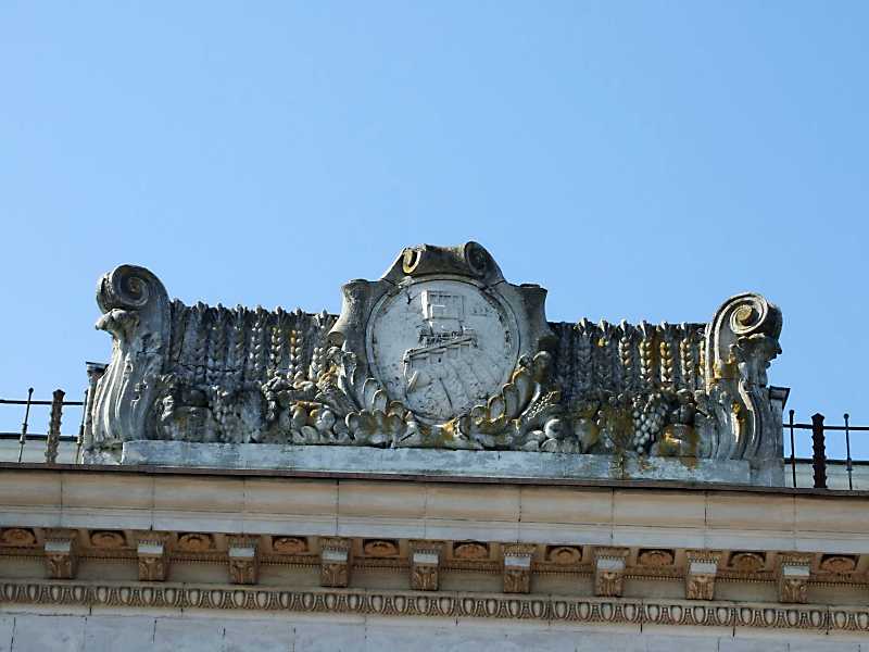 Фронтон головного фасаду Розмір зображення: 800:600 піксел 22 квітня 2011 р. Фото М.І.Жарких. Вище | Наступна сторінка
