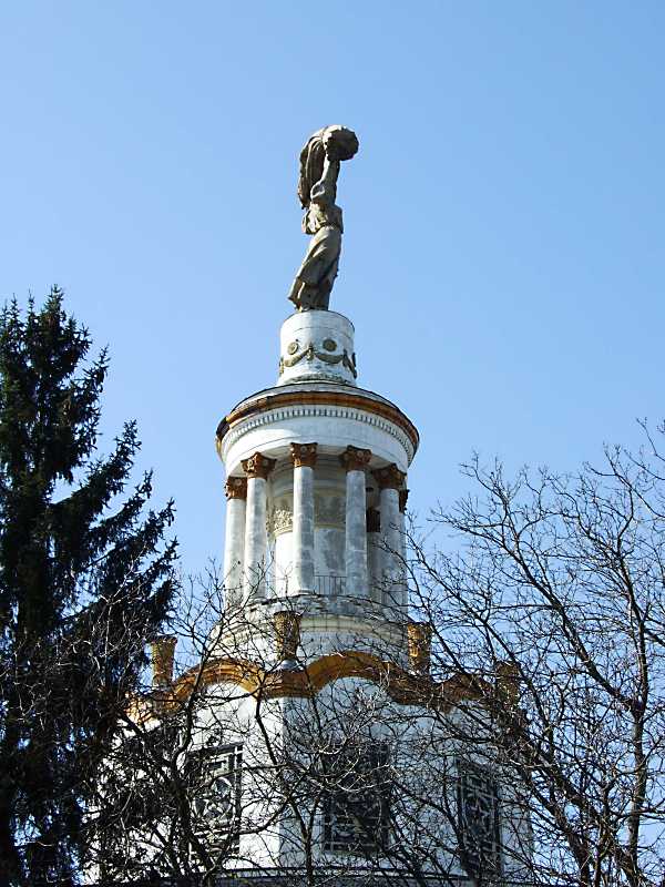 2011 р. Ротонда. Вигляд з південного сходу Розмір зображення: 600:800 піксел 22 квітня 2011 р. Фото М.І.Жарких. Вкладені елементи Скульптура “Дівчина зі снопом” Колонада