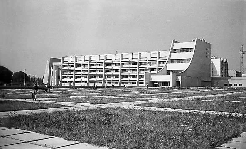 1975 р. Загальний вигляд корпусу фізичного факультетуРозмір зображення: 800:484 піксел 1975 р. 31 серпня. Фото М.І.Жарких. Негатека, № A062-11. |