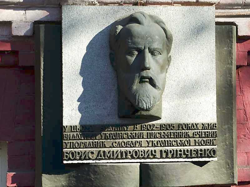 Меморіальна дошка Б.Д.Грінченку Розмір зображення: 800:600 піксел 10 листопада 2008 р. Фото М.І.Жарких. Вище | Наступна сторінка