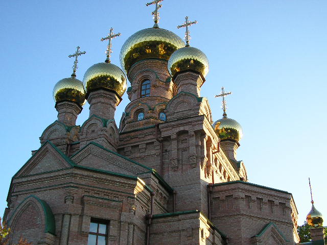 Пустинь Києво-Печерської лаври було засновано 1631 р. у Голосіївському лісі під Києвом митрополитом Петром Могилою. У кінці 18 ст. монастир занепадає і скасовується. Відродження обителі припадає на 40-і рр. 19 ст Церкву збудовано в 1910-1912 рр. за проектом Є.Єрмакова. Мурований квадратний у плані храм являв собою приклад псевдоросійської культової архітектури 19 – початку 20 ст. Фасади було декоровано у формах московського зодчества 17 ст. дрібними візерунковими елементами. Будівля завершувалася п’ятьма цибулястими банями на круглих у плані барабанах. Богослужіння припинилося з 1927 р. Церкву зруйнували протягом 1930-80-х рр.