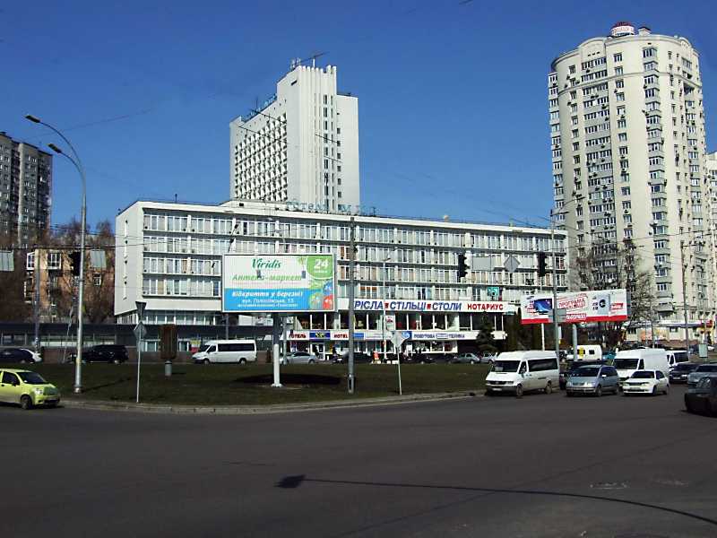 Готель «Мир» (№ 70)Розмір зображення: 800:600 піксел Праворуч – висотний житловий будинок № 68. 23 березня 2012 р. Фото М.І.Жарких. |