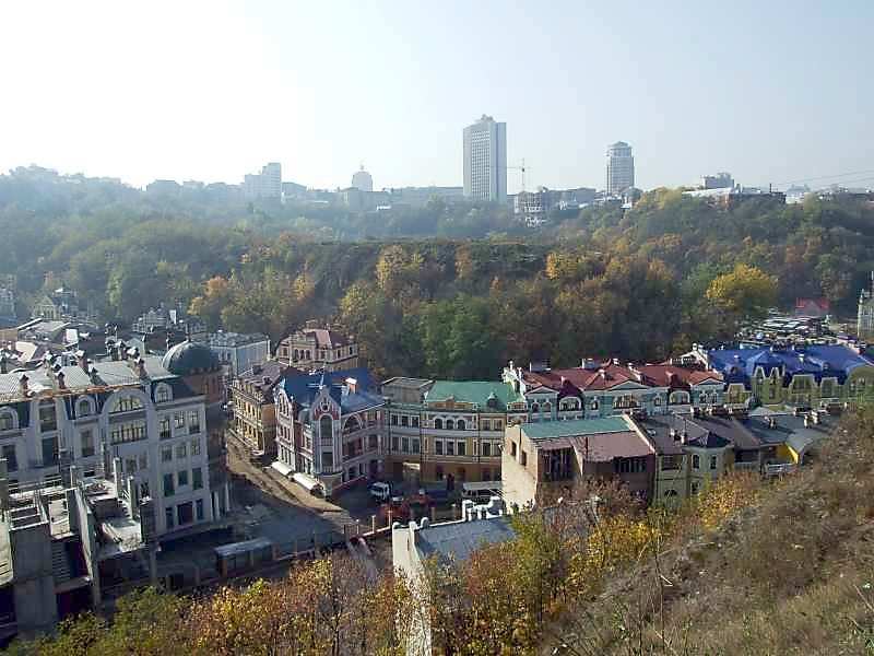 2007 р. Вид на гору Клинець із Замкової гори (на передньому плані - вул.Вознесенська)Розмір зображення: 800:600 піксел 17 жовтня 2007 р. Фото М.І.Жарких. |