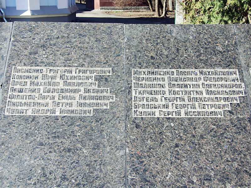 Плити з іменами учасників війни (5 – 6) Розмір зображення: 800:600 піксел 23 березня 2012 р. Фото М.І.Жарких. Попередня сторінка | Вище | Наступна сторінка