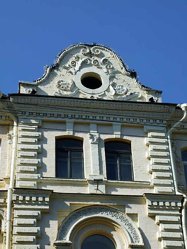 Вікна 4-го поверху Розмір зображення: 600:800 піксел 4 липня 2008 р. Фото М.І.Жарких. Вкладені елементи Фронтон