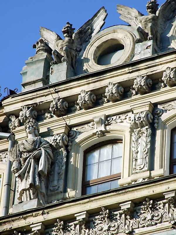 Вікно верхнього поверху + скульптура Афіни (?)Розмір зображення: 600:800 піксел 2008 р. 9 червня. Фото М.І.Жарких. |