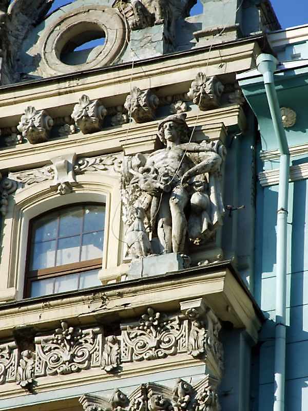 Вікно верхнього поверху + скульптура ГермесаРозмір зображення: 600:800 піксел 2008 р. 9 червня. Фото М.І.Жарких. |