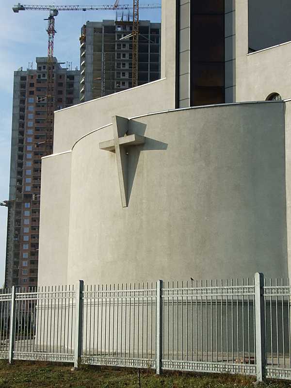 Апсида з хрестом Розмір зображення: 600:800 піксел Фото М. І. Жарких, 3 жовтня 2017 р. Вкладені елементи Хрест на апсиді собору