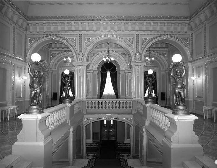 [2003 р.] Парадні сходи з головного вестибюля (№ 1)Розмір зображення: 733:569 піксел Джерело: Звід пам’яток історії і культури України. – К.: 2003 р., т. 2 (Київ), № 251-08. |