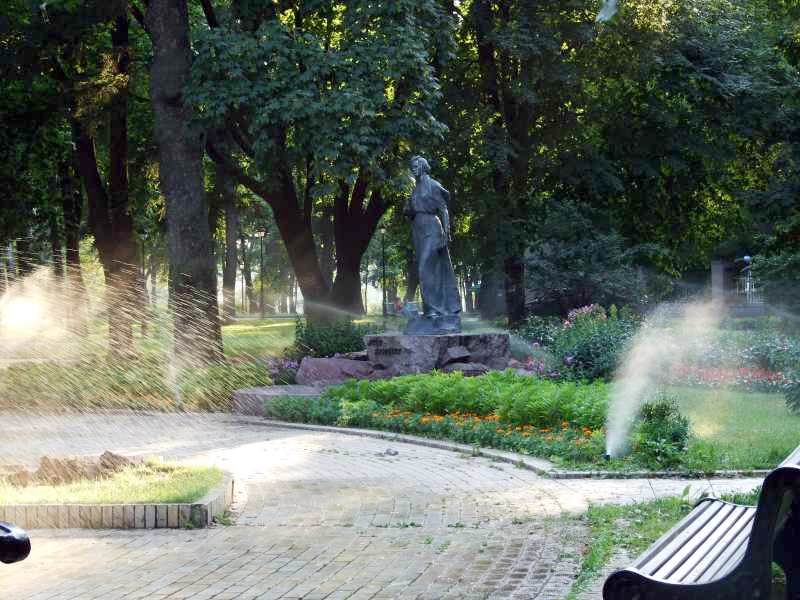 2007 р. Куточок парку з пам’ятником ввечері Розмір зображення: 800:600 піксел 18 липня 2007 р. Фото М.І.Жарких. Попередня сторінка | Вище | Наступна сторінка