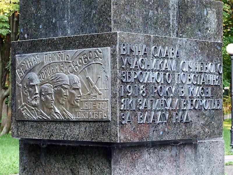 2007 р. Фрагмент постаменту Розмір зображення: 800:600 піксел 18 липня 2007 р. Фото М.І.Жарких. Вкладені елементи Більшовик з прапором