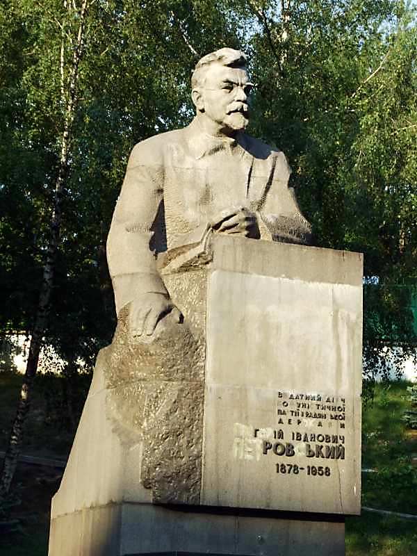 Пам’ятник Г.І.Петровському – більшовицькому керівнику України, 1970 р., скульптор А.Олійник, архітектор І.Ланько. Пам’ятник заввишки 4.5 м з тесаного сірого граніту, постамент – з полірованих гранітних плит [Памятники истории и культуры Украинской ССР. – К.: 1987 г., с. 27].