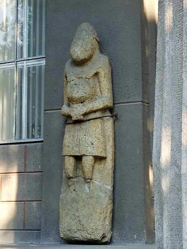 2007 р. Кам’яна антропоморфна стела (ліворуч від входу)Розмір зображення: 600:800 піксел 18 липня 2007 р. Фото М.І.Жарких. |