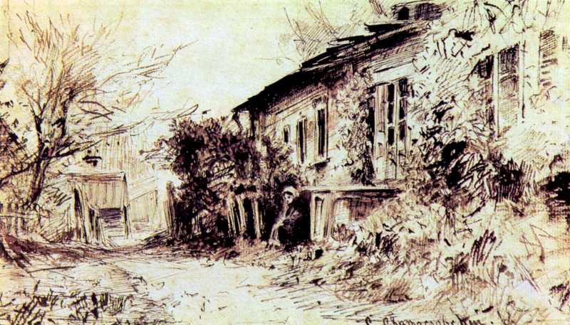 Папір, туш, перо. 17,3: 28,4. Державний музей українського образотворчого мистецтва УРСР, Київ.