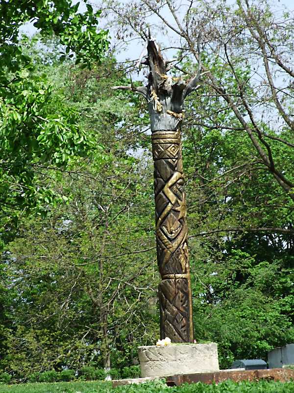 2010 р. Дуб із язичницькими рельєфами (новобудова)Розмір зображення: 600:800 піксел 6 травня 2010 р. Фото М.І.Жарких. |