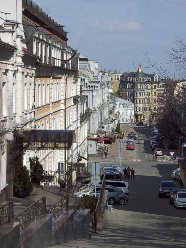2021 р. Перспектива від Боричевого Току в бік вул. БратськоїРозмір зображення: 600:800 піксел Фото М. І. Жарких, 21 березня 2021 р. |