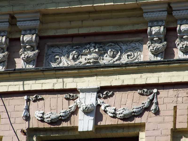 Фриз і скульптурні прикраси над вікном Розмір зображення: 800:600 піксел Фото М. І. Жарких, 21 березня 2021 р. Вище | Наступна сторінка