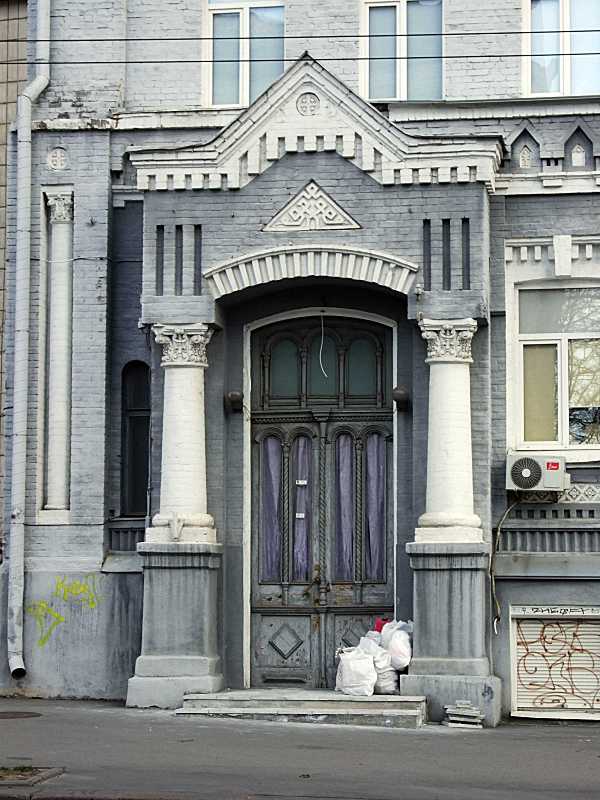 Вхід Розмір зображення: 600:800 піксел Фото М. І. Жарких, 15 березня 2020 р. Вкладені елементи Тимпан арки входу Капітель колони