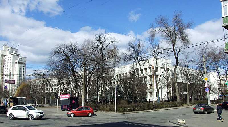 2020 р. Загальний вигляд з півдняРозмір зображення: 800:445 піксел Ліворуч – вул. Іллєнка, праворуч – вул. Ромоданова. Фото М. І. Жарких, 15 березня 2020 р. |