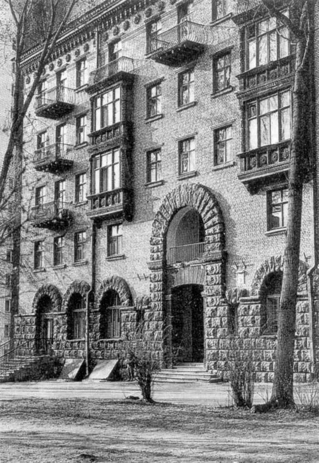 Фрагмент головного фасадуРозмір зображення: 653:948 піксел Джерело: Звід пам’яток історії і культури України. – К.: 1999 р., т. 1 (Київ), с. 348. |