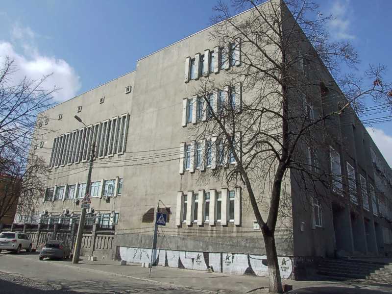 Офісний будинок (№ 9)Розмір зображення: 800:600 піксел Вигляд зі сходу. Ліворуч – вул. Іллінська, праворуч – фасад по вул. Почайнинській. Фото М. І. Жарких, 21 березня 2021 р. |