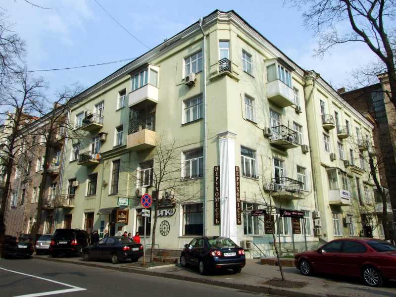 Житловий будинок (№ 17 / Шовковична, 5)Розмір зображення: 800:600 піксел Загальний вигляд (ліворуч – вул. Шовковична, праворуч – вул. Інститутська). 6 квітня 2009 р. Фото М.І.Жарких. |
