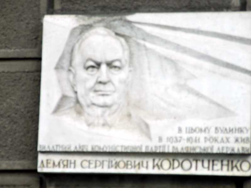 Меморіальна дошка Д.С.Коротченку Розмір зображення: 800:600 піксел 6 квітня 2009 р. Фото М.І.Жарких. Попередня сторінка | Вище | Наступна сторінка