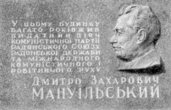 Меморіальна дошка Д.З.МануїльськомуРозмір зображення: 590:382 піксел Джерело: Звід пам’яток історії і культури України. – К.: 1999 р., т. 1 (Київ), с. 421. |