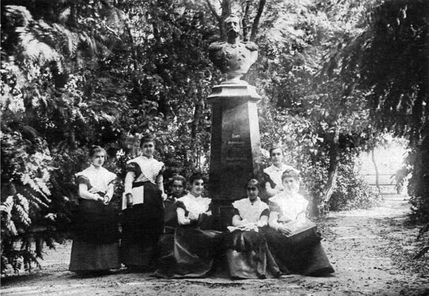 1900-і рр. Дівчата-інститутки біля бюста імператора Олександра 2-го
