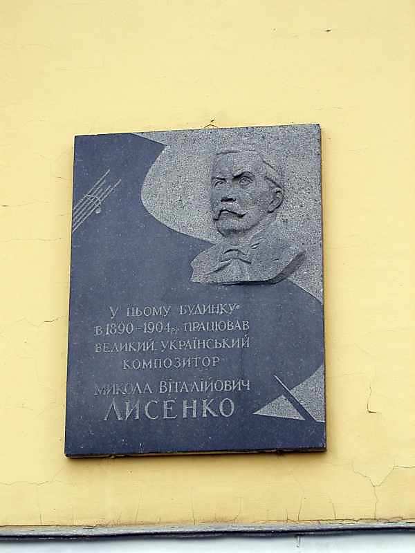 Меморіальна дошка М.В.Лисенку Розмір зображення: 600:800 піксел 2 грудня 2005 р. Фото М.І.Жарких. Вище | Наступна сторінка
