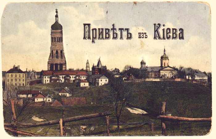 [Поч.20 ст.] Поштівка з видом монастиря і проектованої церкви св.Миколи на Звіринці
