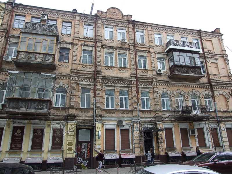 2021 р. Фасад по Ярославовому Валу Розмір зображення: 800:600 піксел Фото М. І. Жарких, 17 березня 2021 р. Вкладені елементи Вікна 4-го поверху і фронтон Вікно 2-го поверху (прямокутне) Вікно 2-го поверху (півциркульне)