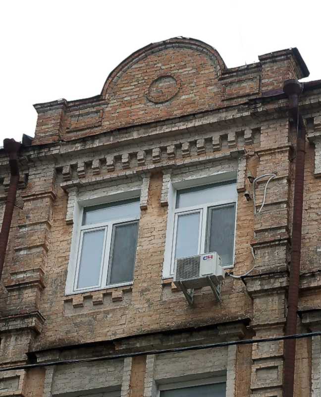Вікна 4-го поверху і фронтон Розмір зображення: 648:800 піксел Фото М. І. Жарких, 17 березня 2021 р. Вище | Наступна сторінка