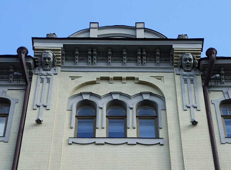 Вікна 6-го поверху і фронтон сходової кліткиРозмір зображення: 800:590 піксел Фото М. І. Жарких, 15 березня 2020 р. |