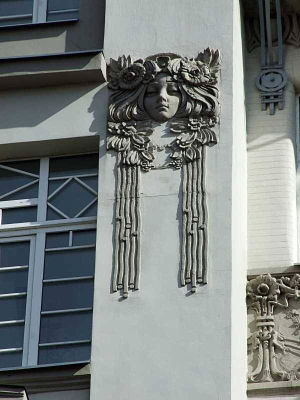 Маскарон 6-го поверху сходової клітки Розмір зображення: 600:800 піксел Фото М. І. Жарких, 15 березня 2020 р. Вище | Наступна сторінка