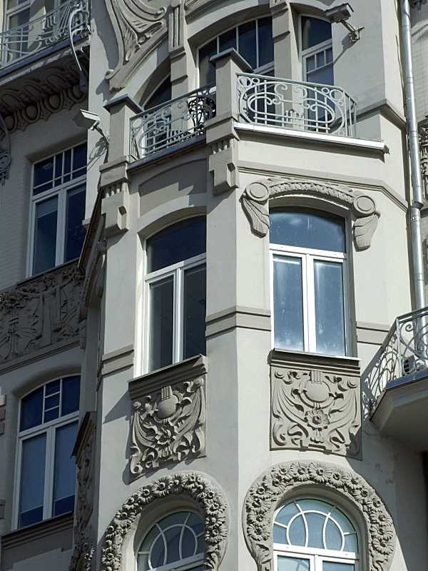 Фрагмент еркера (5-й поверх) Розмір зображення: 600:800 піксел Фото М. І. Жарких, 15 березня 2020 р. Попередня сторінка | Вище | Наступна сторінка