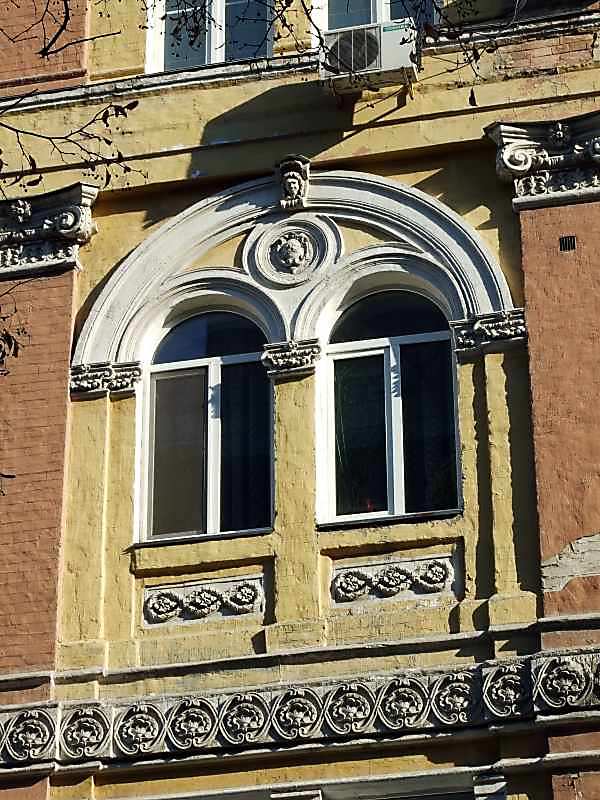 Вікна 3-го поверху Розмір зображення: 600:800 піксел 29 жовтня 2007 р. Фото М.І.Жарких. Вкладені елементи Рельєфний пояс Тимпан