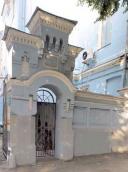 Складається з двох прилеглих до будинків № 36, 38 вхідних аркових отворів і центрального проїзду з гратчастими стулками. Вхідні брами з арковими отворами і тридільними уступчастими завершеннями прикрашено прямокутними фільонками, пласкими фігурними нішами, аркатурними поясами та увінчано профільованими карнизами, підкресленими смугами цегляного орнаменту.