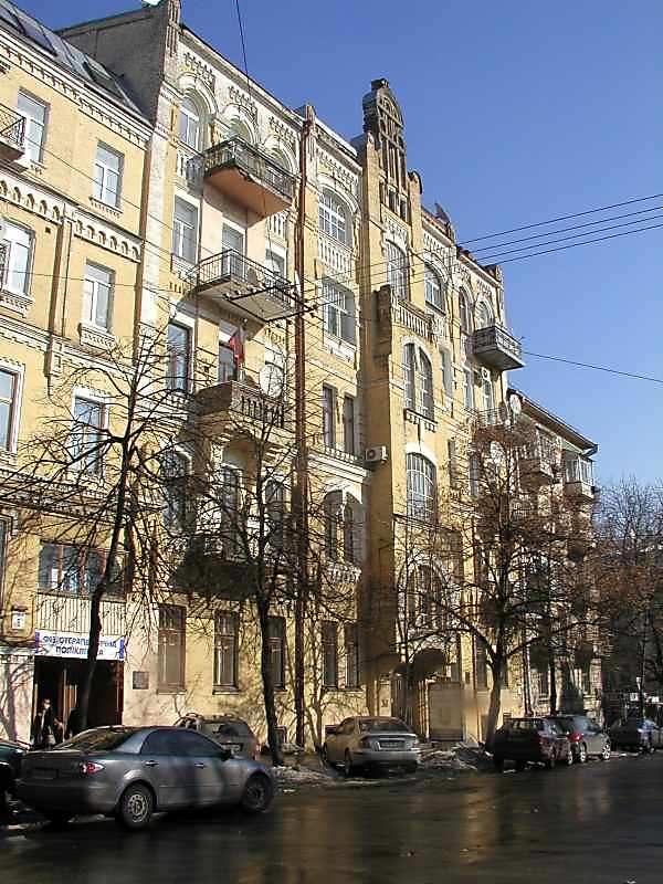 2006 р. Загальний вигляд із заходу Розмір зображення: 600:800 піксел 20 лютого 2006 р. Фото М.І.Жарких. Вкладені елементи Центральна частина фасаду 4-5-го поверхів