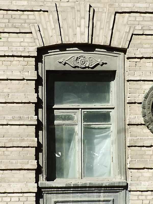 2007 р. Вікно 1-го поверху Розмір зображення: 600:800 піксел 22 червня 2007 р. Фото М.І.Жарких. Вкладені елементи Скульптурна прикраса над вікном