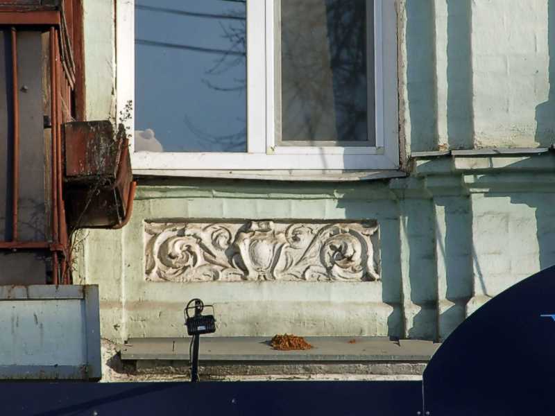 Рельєфна вставка під вікном 2-го поверху Розмір зображення: 800:600 піксел Фото М. І. Жарких, 1 квітня 2021 р. Вище | Наступна сторінка