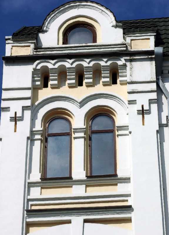 Вікно 4-го поверху і фронтон Розмір зображення: 575:800 піксел Фото М. І. Жарких, 24 березня 2021 р. Вище | Наступна сторінка