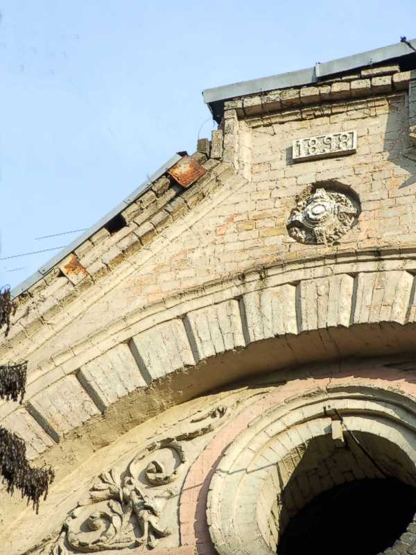 Фрагмент фронтона з датою 1898 Розмір зображення: 600:800 піксел Фото М. І. Жарких, 1 квітня 2021 р. Вище | Наступна сторінка