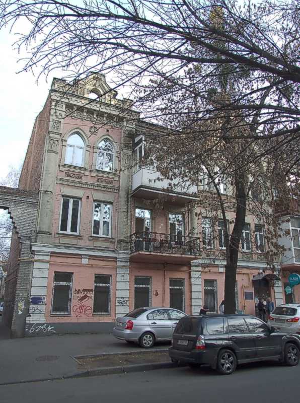 2021 р. Ліва частина головного фасаду Розмір зображення: 596:800 піксел Фото М. І. Жарких, 1 квітня 2021 р. Попередня сторінка | Вище | Наступна сторінка