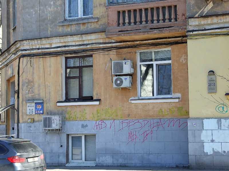 Фрагмент 1-го поверхуРозмір зображення: 800:600 піксел Ліворуч – табличка «Юрківська 36»; праворуч – табличка «Юрківська 36/10». І таке буває. Фото М. І. Жарких, 26 березня 2021 р. |