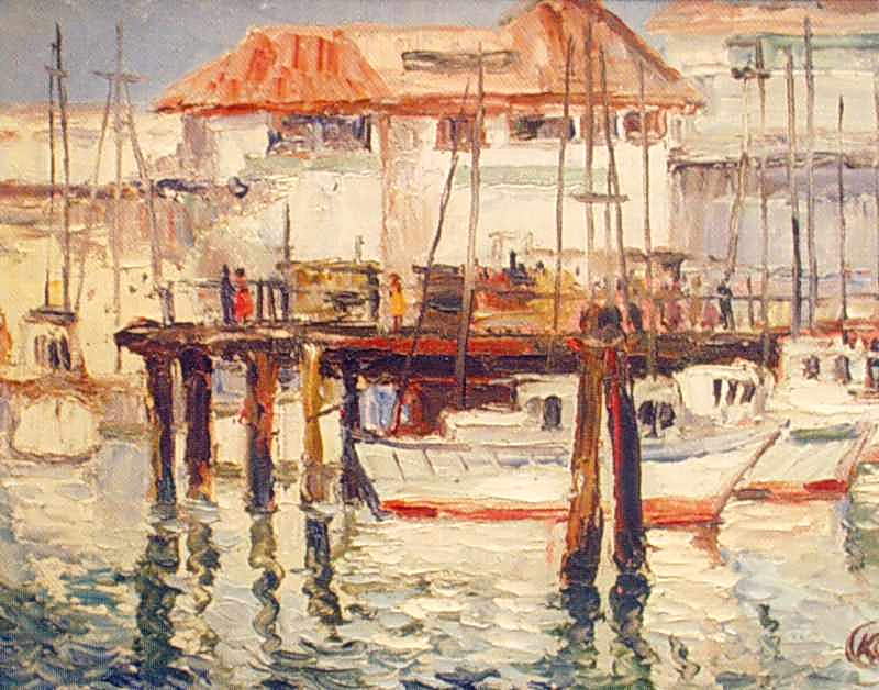 К.Кричевська-Росандич. Рибальський причал. Сан-Франциско. Картон, олія. 1973 р.